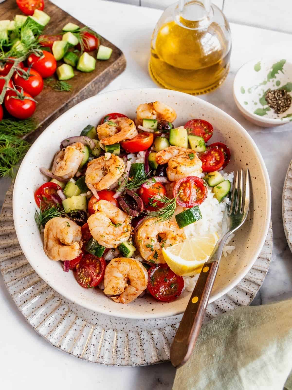 Mediterranean Shrimp Rice Bowl (with Salad)