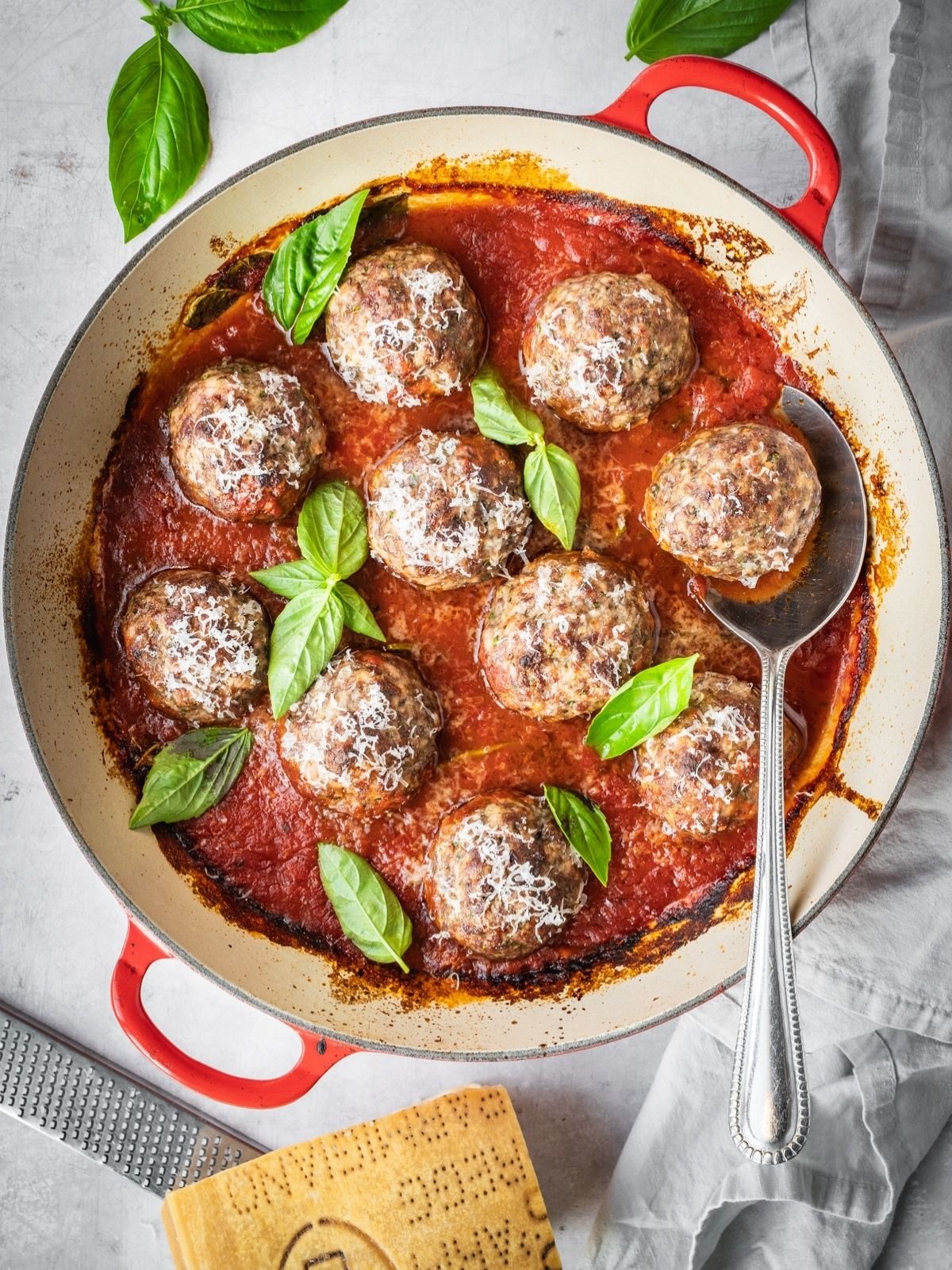 - Onion: Adding onion to meatballs is pretty standard, but I do like to grate it as this adds moisture and a subtle sweetness to the mix. It’s how you get tender meatballs.